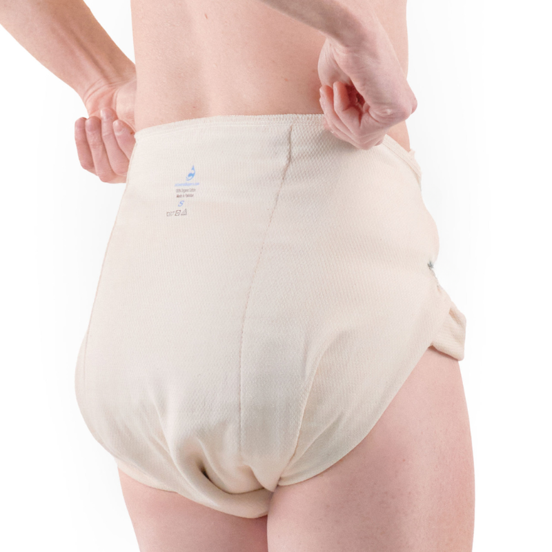 To keep everything in place during the day, try a latex cover to slim bulky undergarments.Our Adult Training Pants are super absorbent to catch unexpected leaks. Or for more absorbency, try BeDry Pull-On Disposable Diapers.